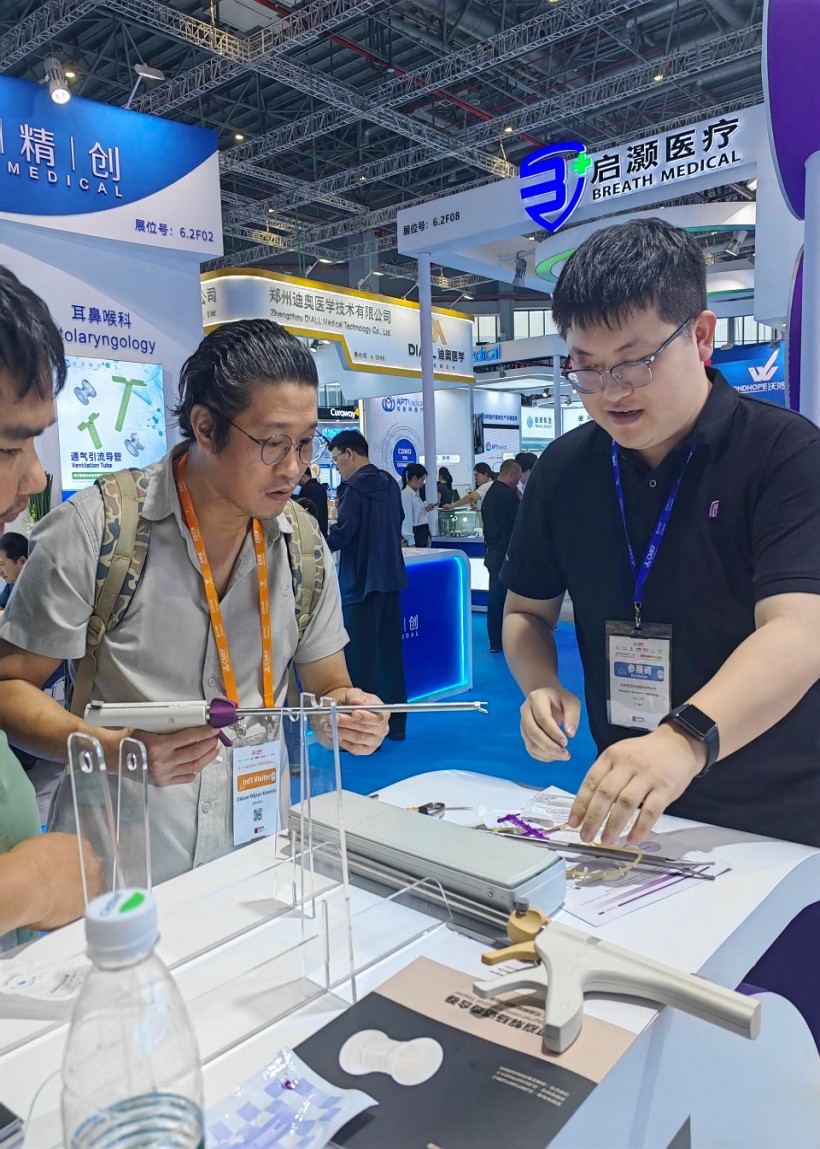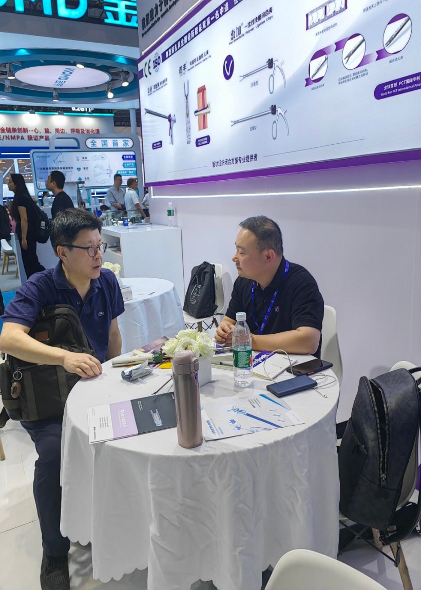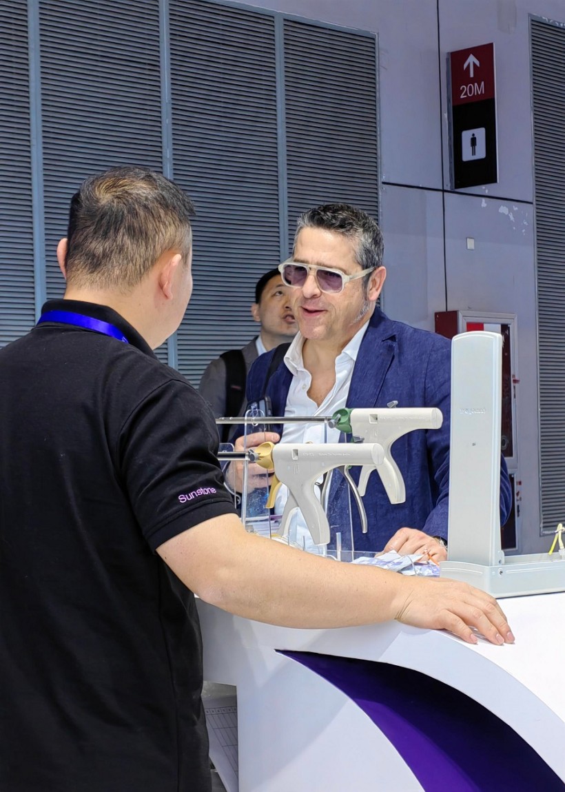 2025年4月8日,第91屆中國國際醫療器械(春季)博覽會(簡稱“CMEF”)在國家會展中心(上海)啟幕,圣石科技在創新醫療器械研制的銳意進取,成為展會的看點之一。作為管腔組織閉合及吻合方案的專業提供者,圣石展品吸引了大量國內外客戶的專程體驗,展臺前人流不息,洽談氣氛熱烈。